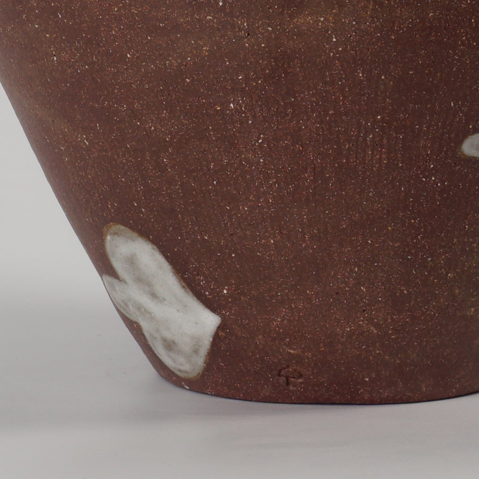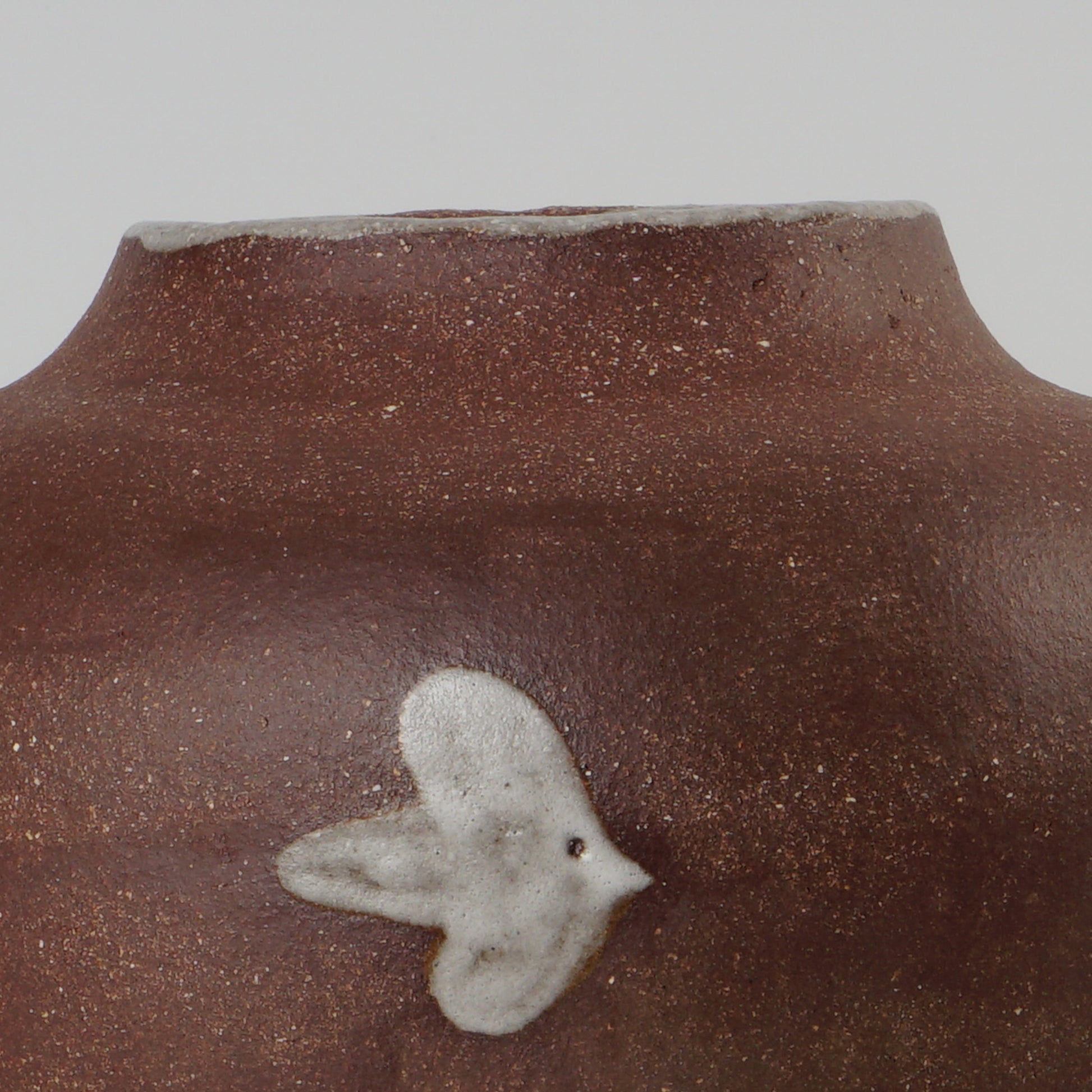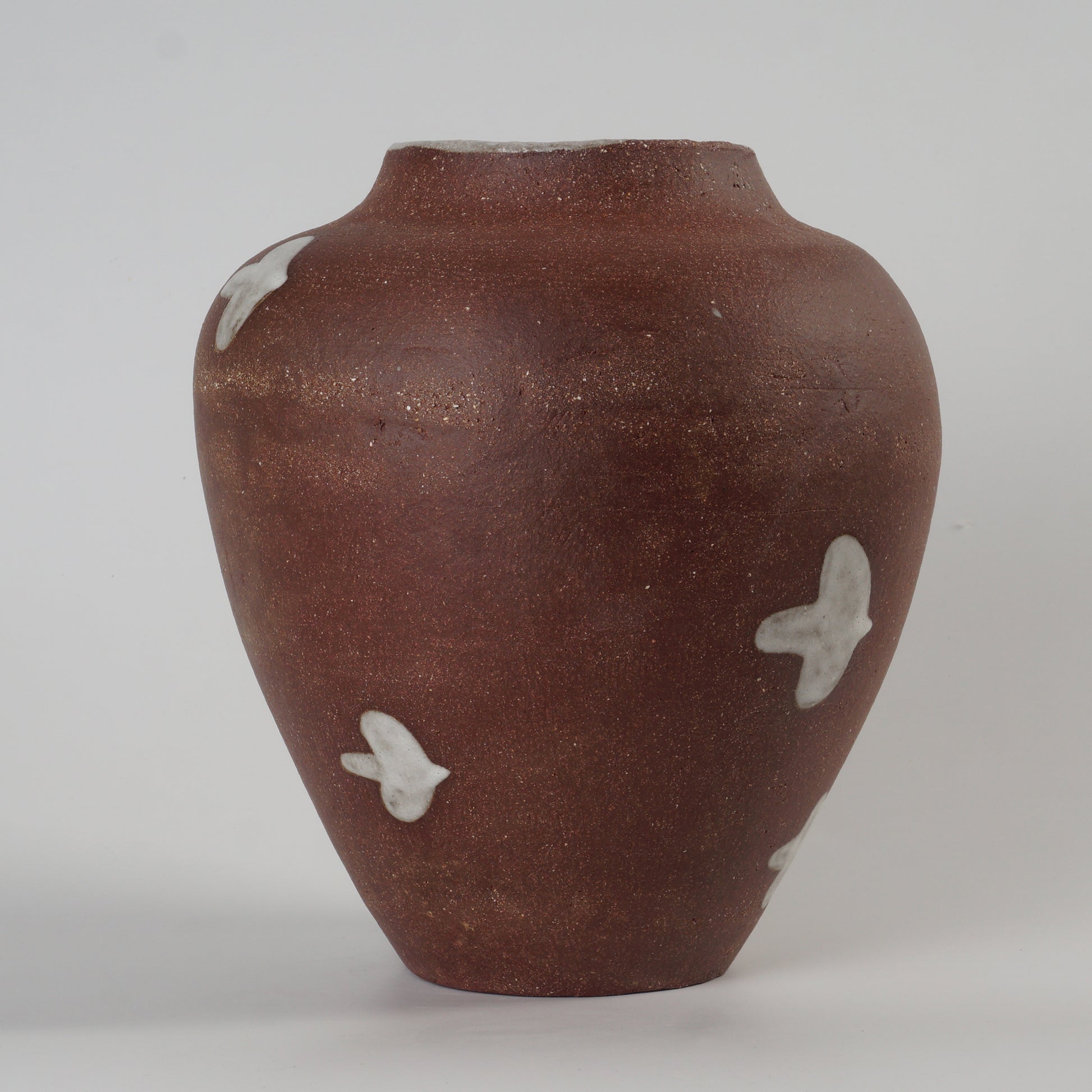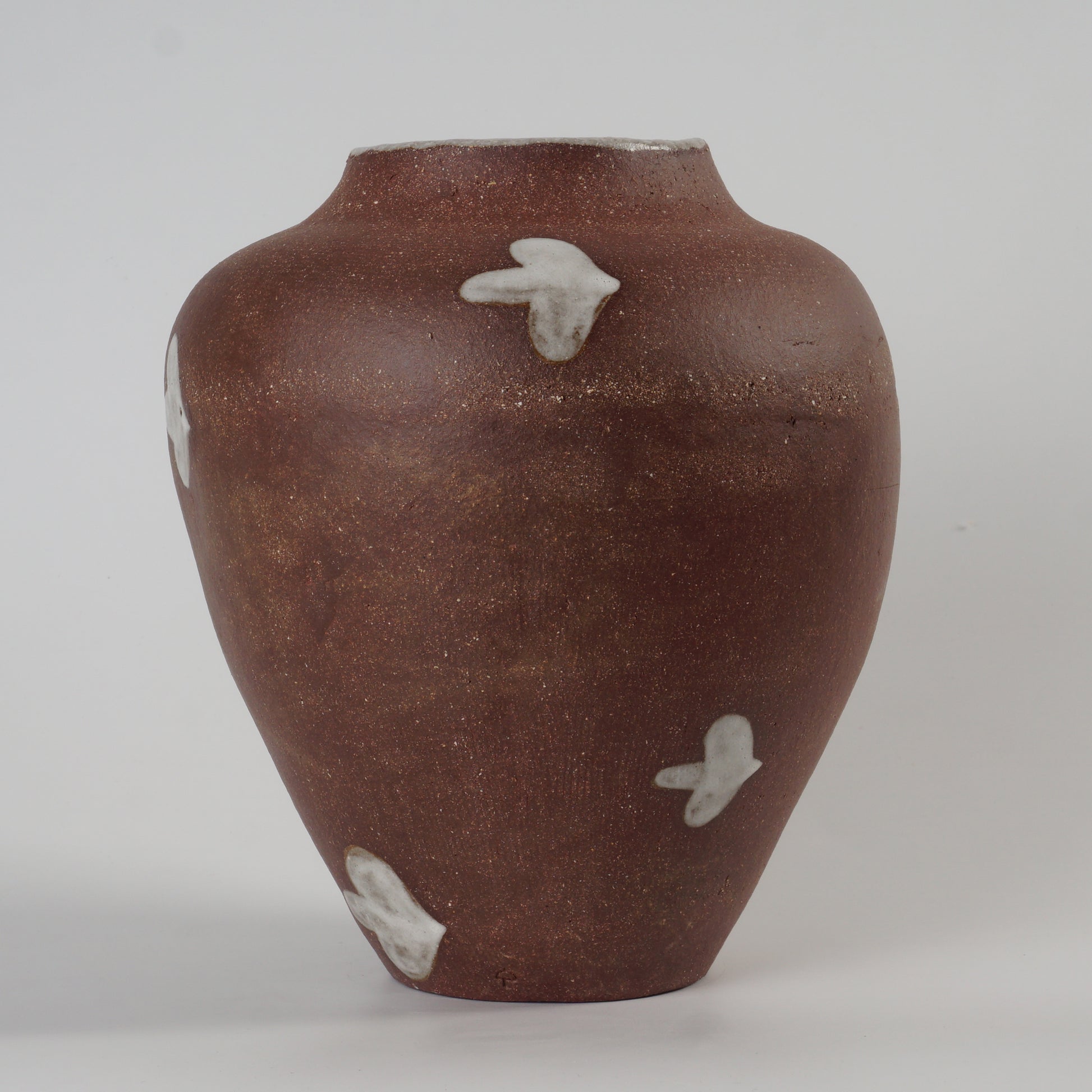 Ваза в кольорі теракот, випалена при 1230°C (2246°F). Покрита білою матовою глазурʼю всередині та прикрашена білими ніжними образами пташок, що летять додому — що сиволізують тепло, повернення та грамонію.