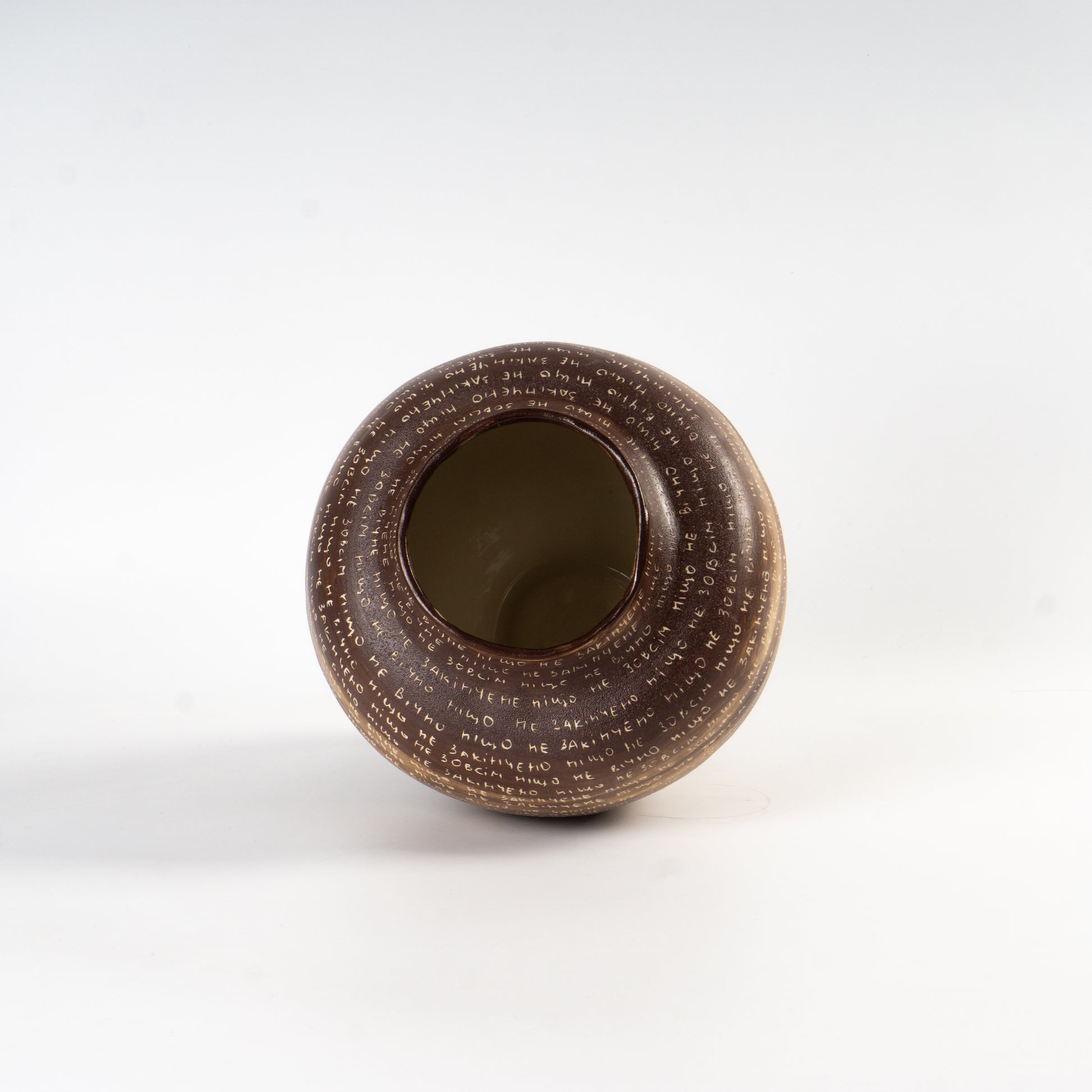 Ваза виконана в техніці молочіння, покрита матовою глазурʼю всередині. Поверхня вази вручну розписана і несе глибокі сенси "ніщо не вічне, ніщо не закінчене" — нагадуючи про швидкоплинність, про те як в кожному завершенні приховано новий початок.