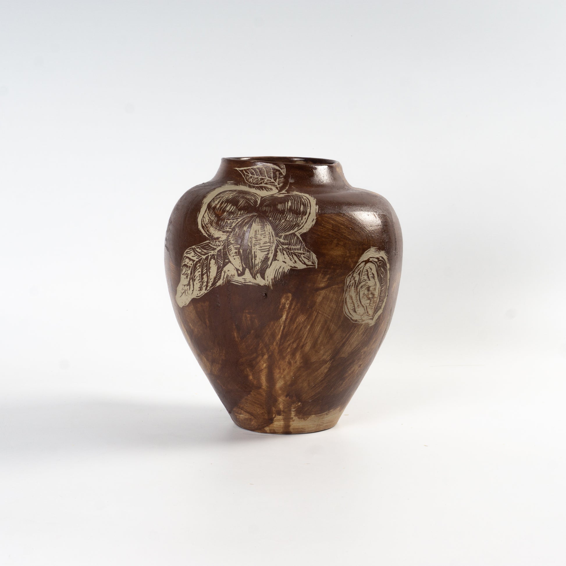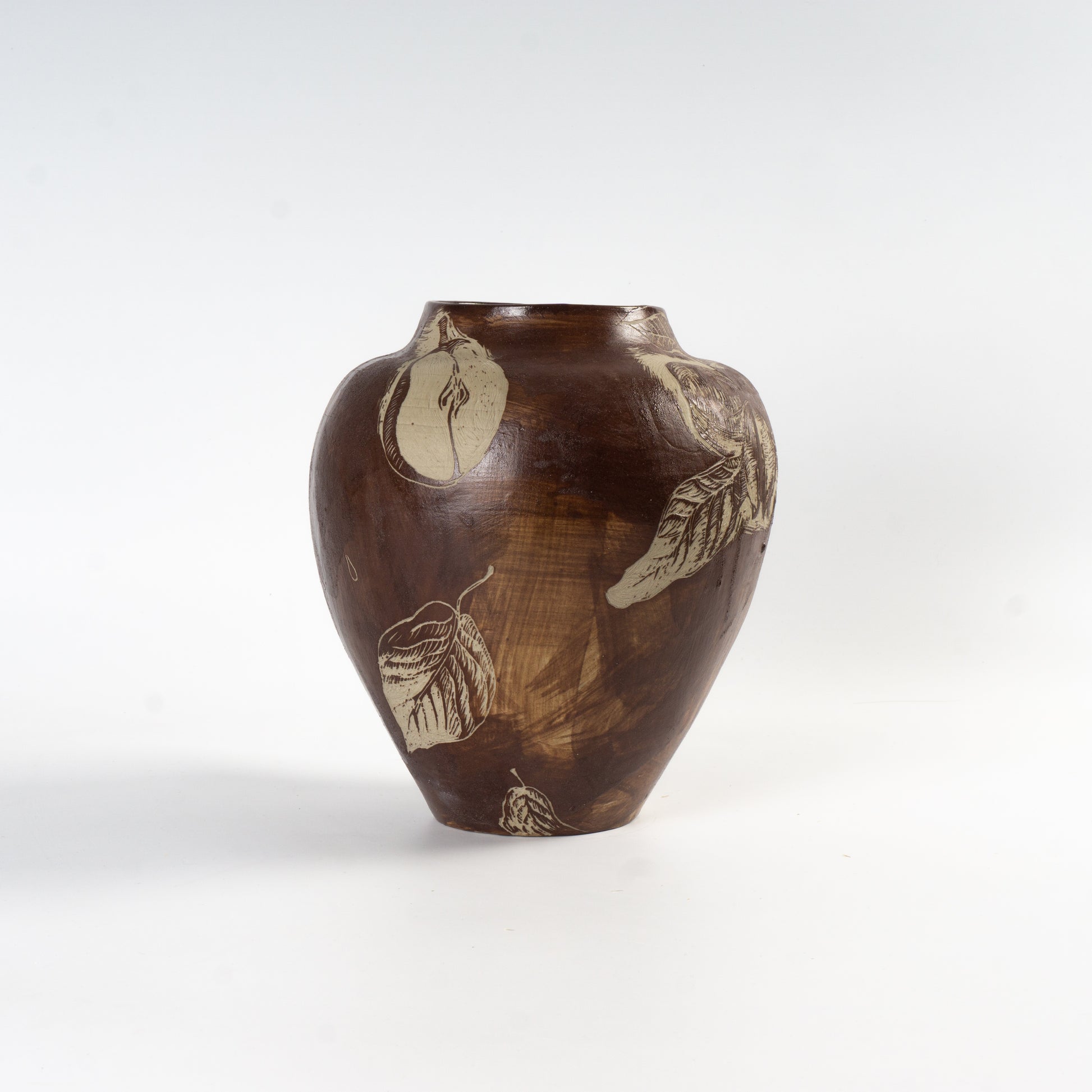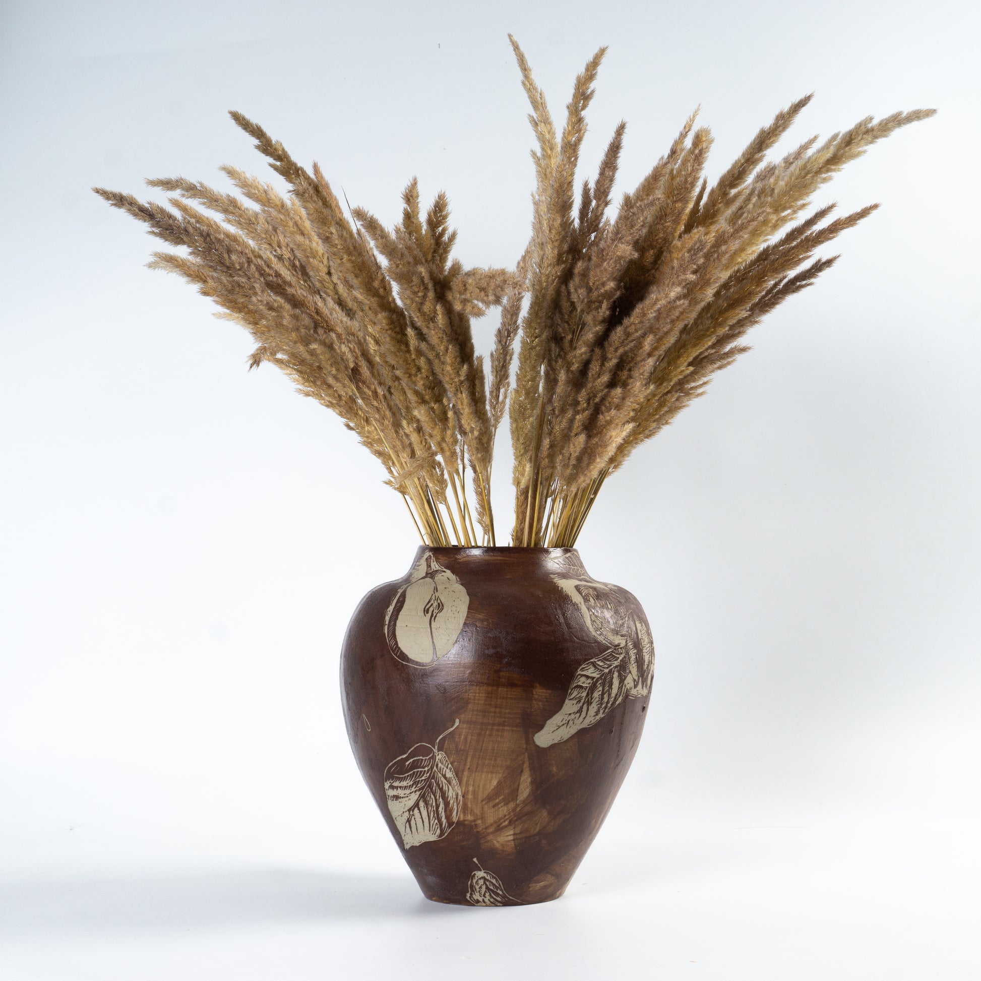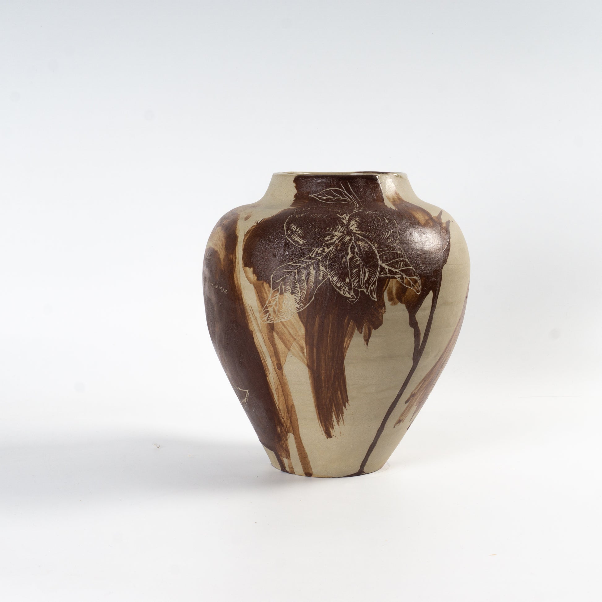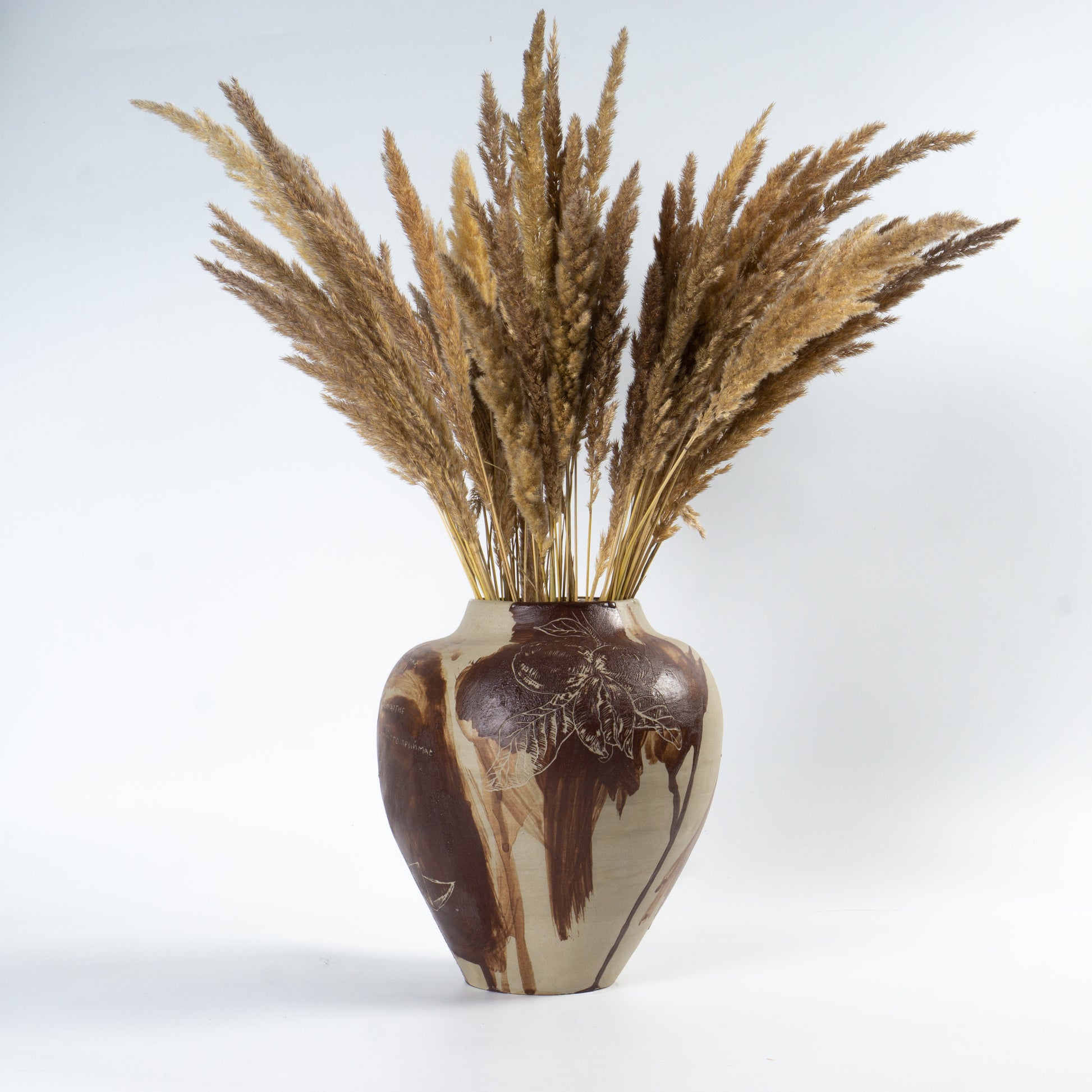 Ваза виконана в техніці молочіння, покрита матовою глазурʼю. Поверхня вази вручну розписана поетичним фрагментом та малюнками: