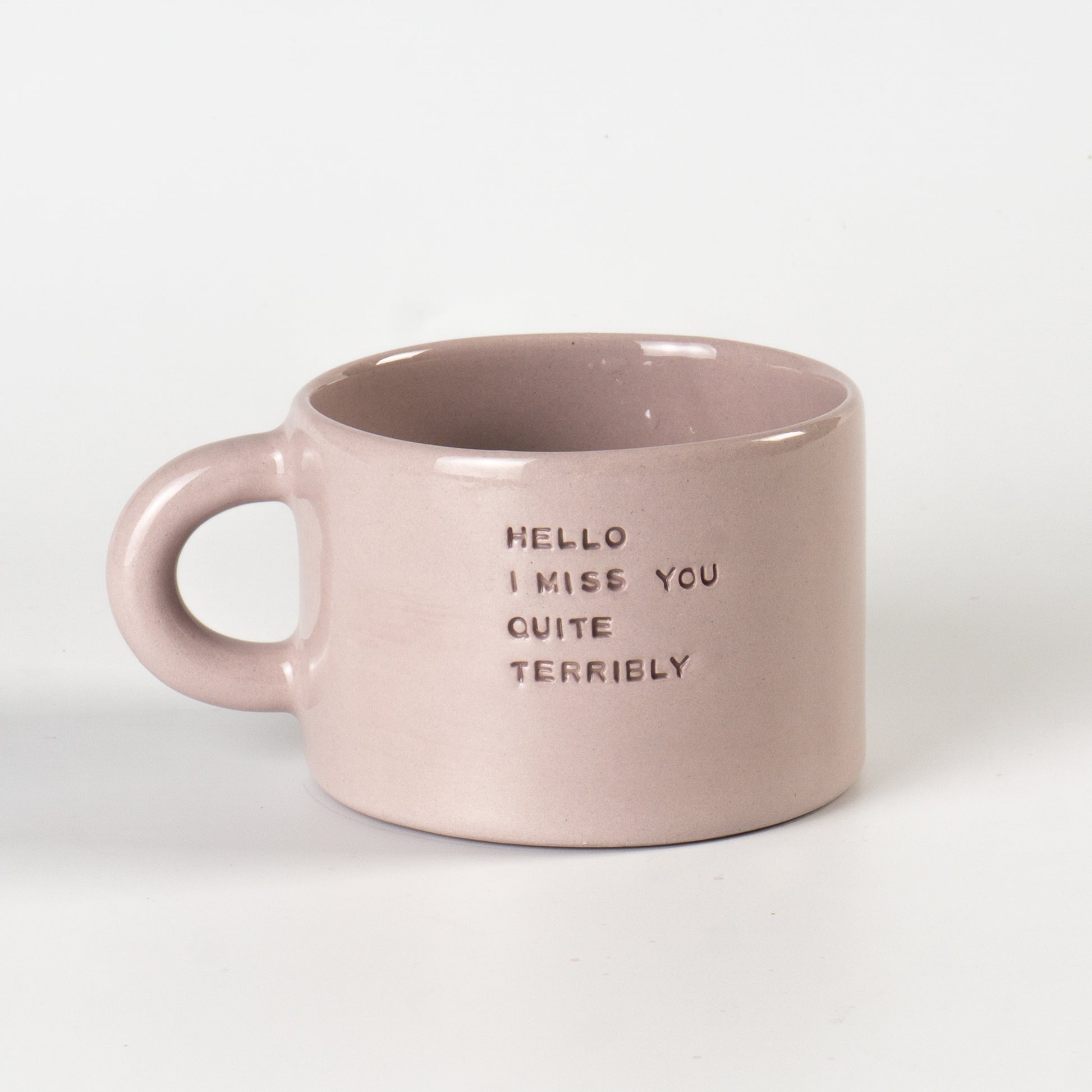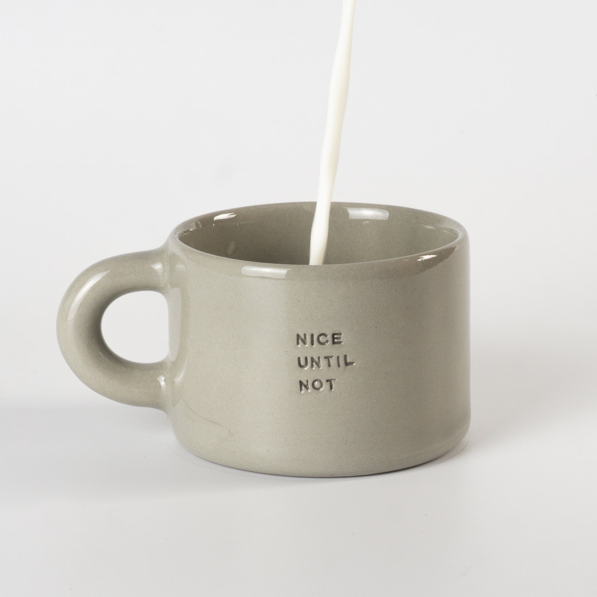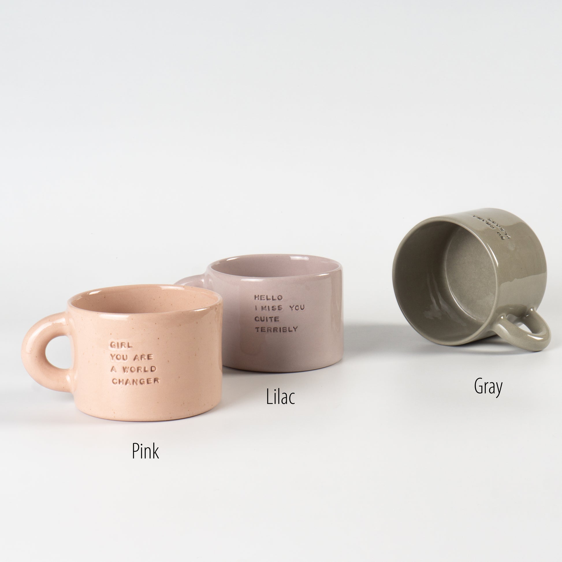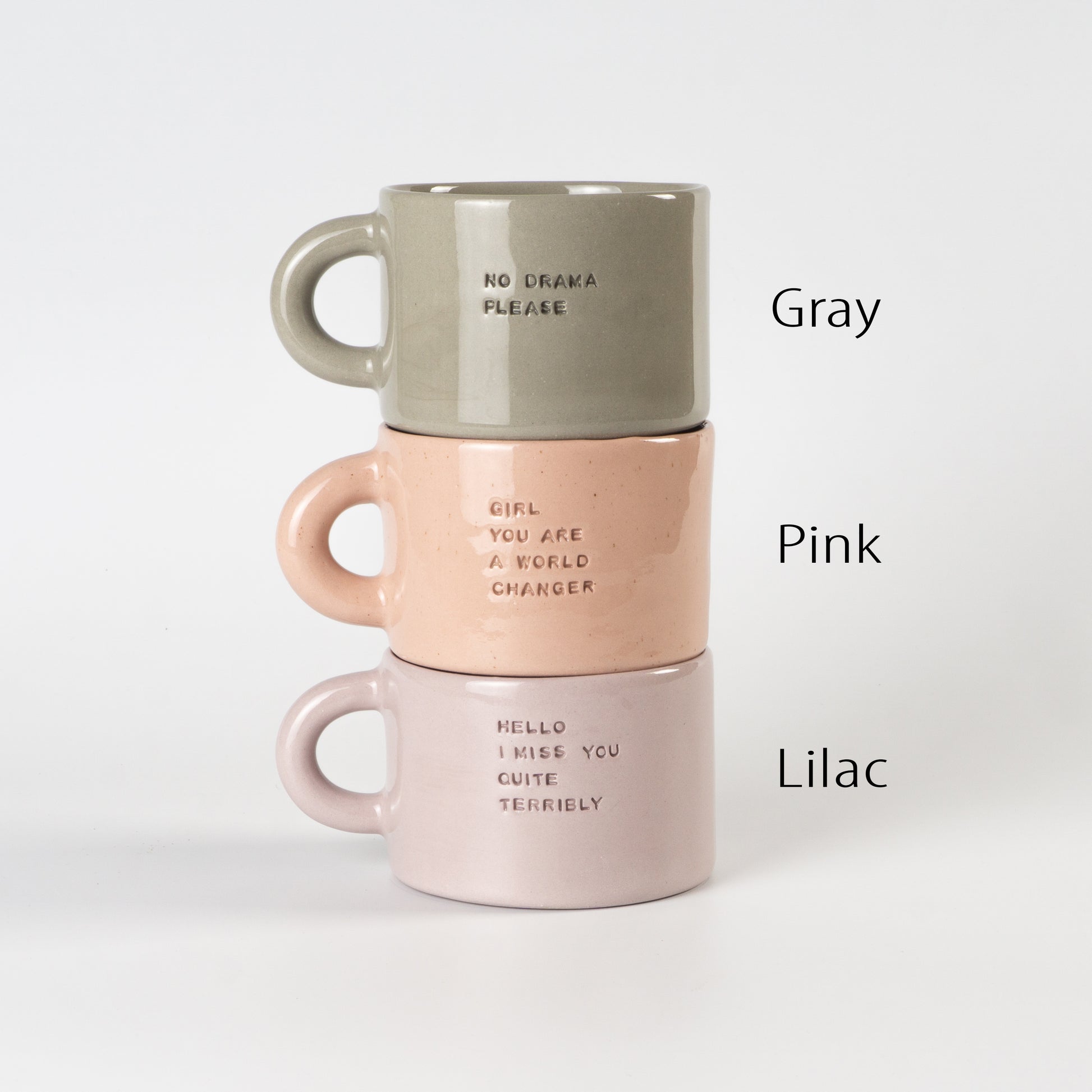 Півпорцелянова чашечка в мінімалістичному стилі сірого, рожевого та бузкового кольорів, прикрашена написами-штампами. Покрита прозорою, безпечною для харчових продуктів глазур’ю — поверхня гладенька та приємна на дотик. Чиста форма, акуратний край і зручна ручка створюють ідеальний баланс стилю та функціональності.