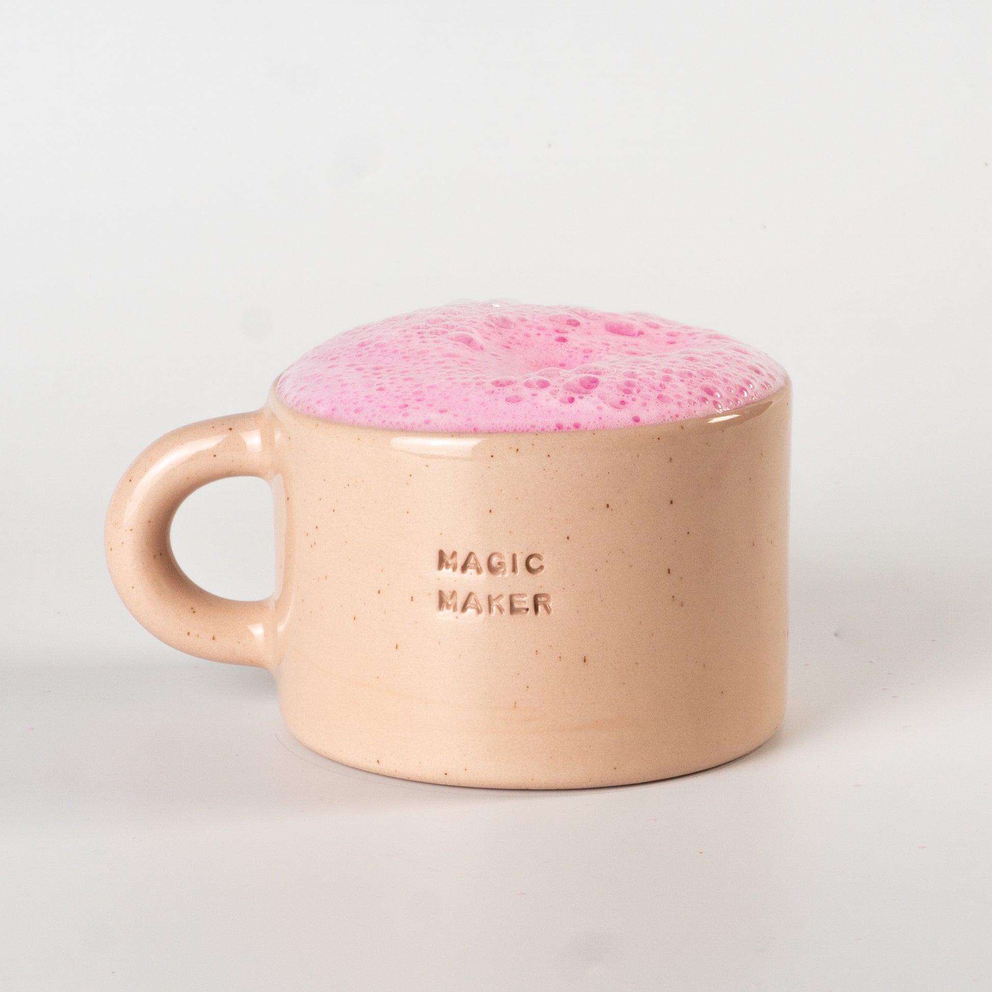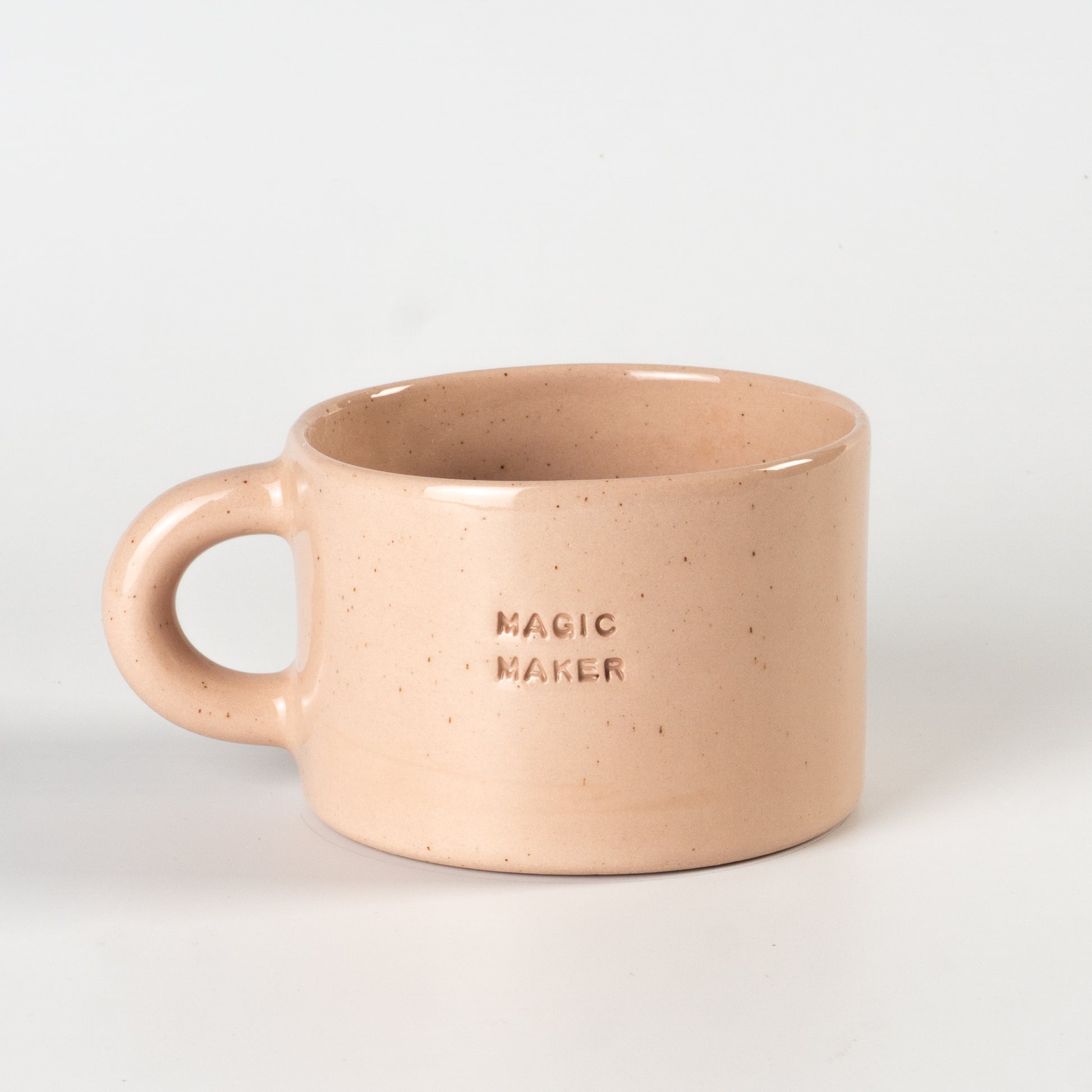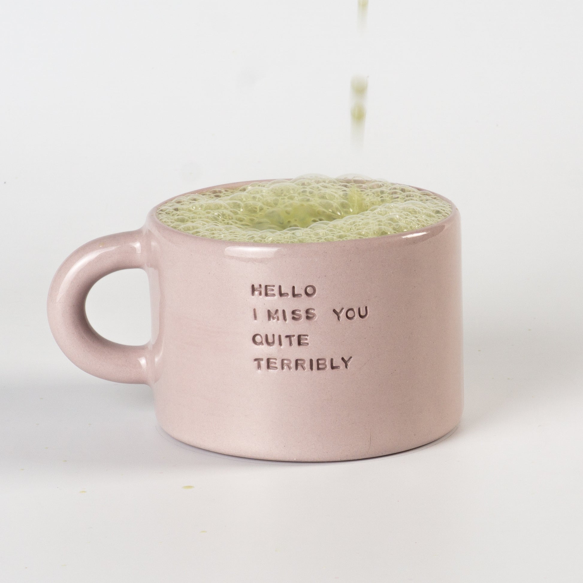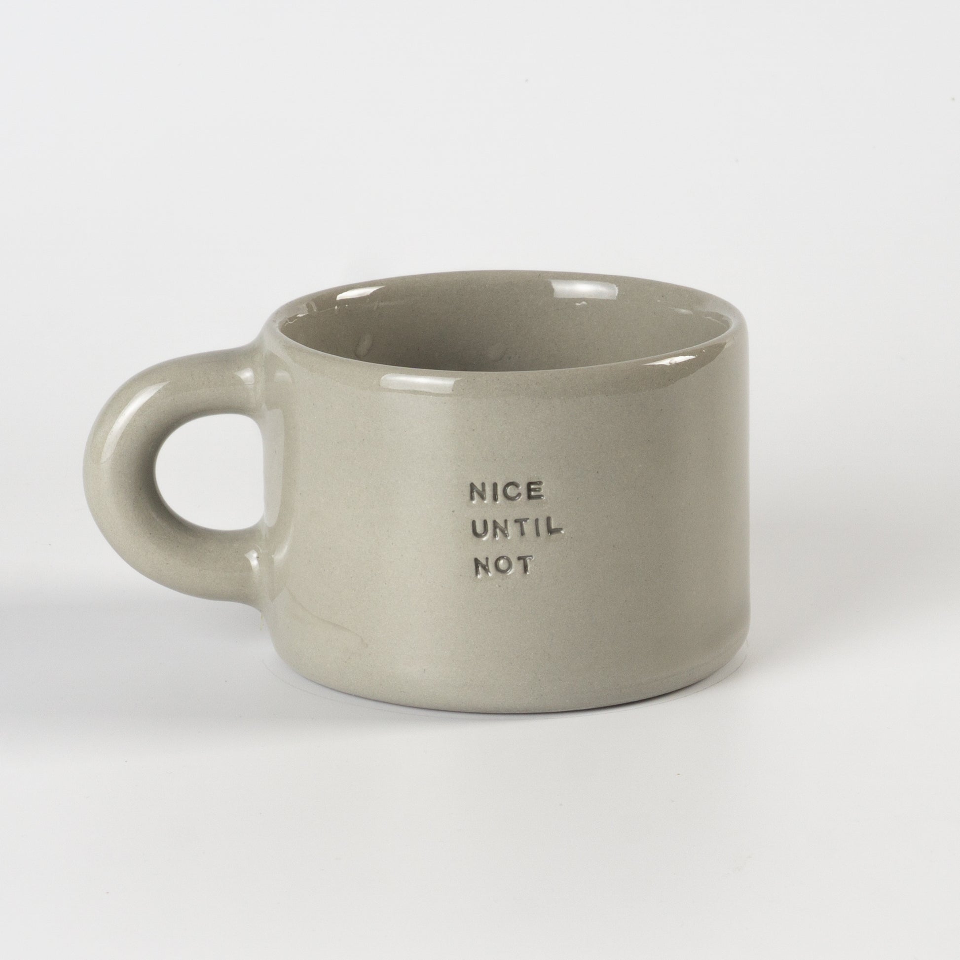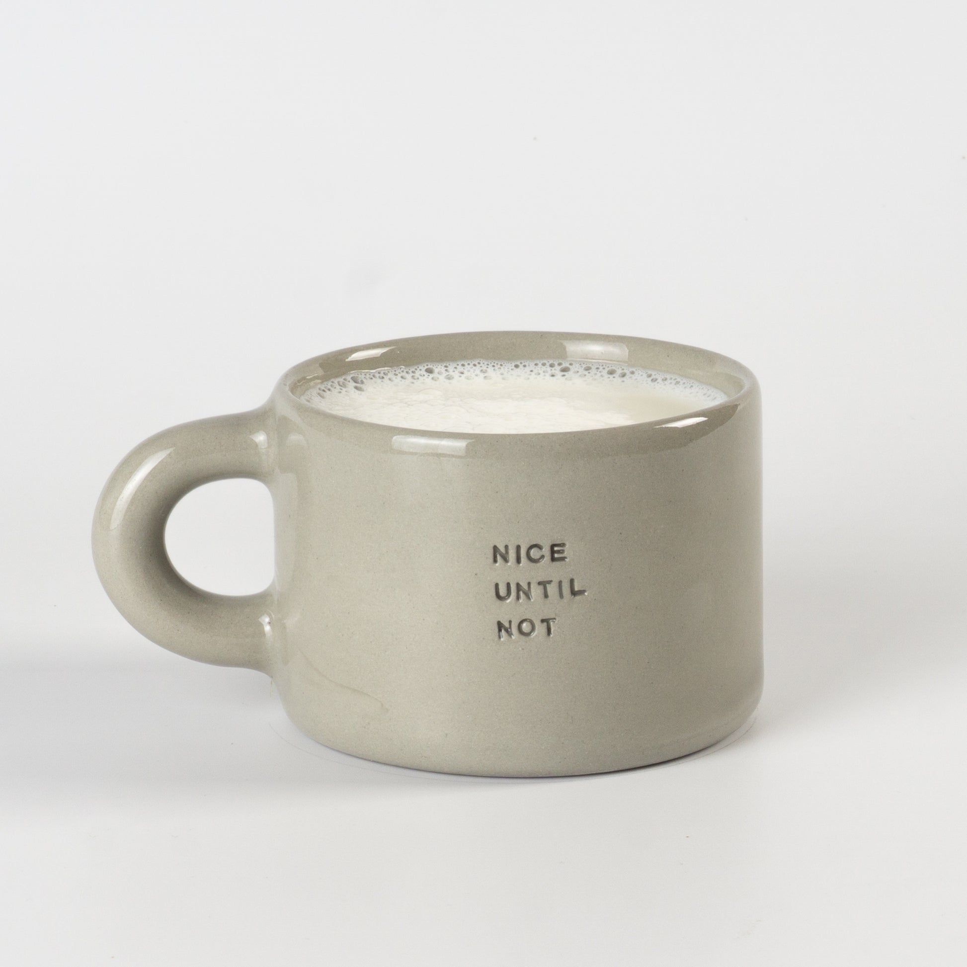 Півпорцелянова чашечка в мінімалістичному стилі сірого, рожевого та бузкового кольорів, прикрашена написами-штампами. Покрита прозорою, безпечною для харчових продуктів глазур’ю — поверхня гладенька та приємна на дотик. Чиста форма, акуратний край і зручна ручка створюють ідеальний баланс стилю та функціональності.