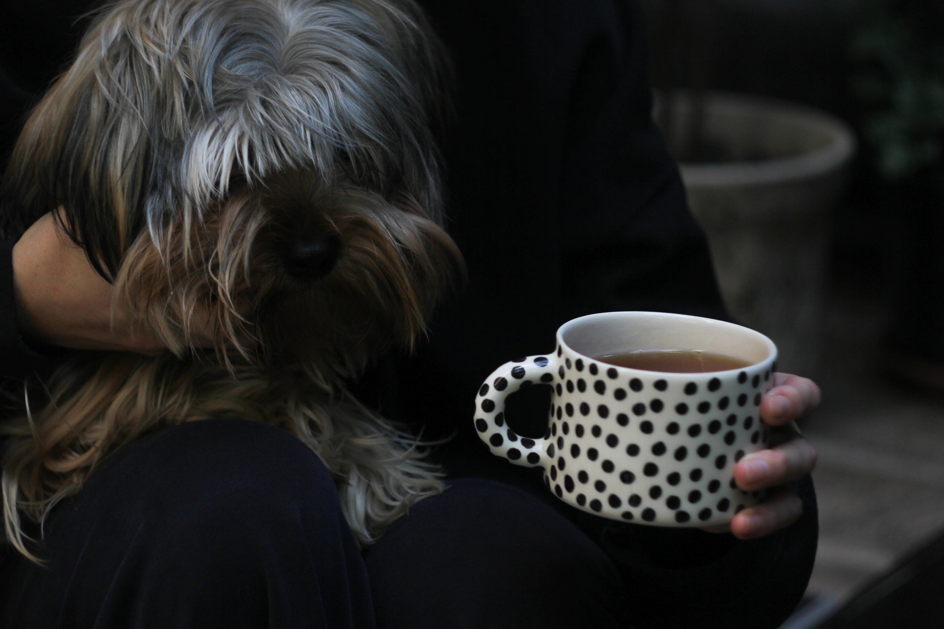 горнятко з півпорцляни з крапочками